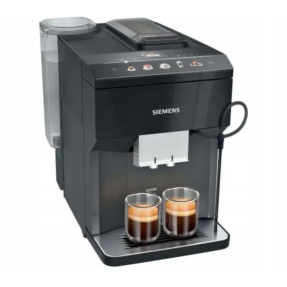 SIEMENS TP513R09 Espressomaschine Mit der SIEMENS TP513R09 Espressomaschine können Sie schnell Ihren Lieblingsespresso oder einen starken Latte mit samtigem Schaum zubereiten.. Das Gerät vereint hochwertige Brühung, einfache Bedienung und elegantes Design. Dank des großen und gut lesbaren Bedienfelds haben Sie mit nur einer Berührung bequemen Zugriff auf zahlreiche Getränke.. Die Reinigung der Maschine ist unglaublich einfach: Das autoMilk Clean System reinigt das Milchaufschäumsystem nach jedem Milchgetränk ohne Ihr Zutun.. Die Verwendung von heißem Dampf garantiert maximale Hygiene und minimalen Aufwand Ihrerseits.. Darüber hinaus macht die vordere Öffnung die Wartung der Maschine einfacher als je zuvor.. Volle Funktionalität kombiniert mit perfekter Form - Siemens Siemens gewährleistet perfekte Funktionalität in Harmonie mit ästhetischem Design. Kaffeevollautomaten von Siemens beeindrucken nicht nur durch Innovation und exzellente Leistung, sondern auch durch ihr elegantes Erscheinungsbild.. Automatische Milchsystemreinigung - autoMilk Clean Jeder Kaffeeliebhaber genießt es, aromatischen Kaffee zu brühen, aber die Reinigung des Milchaufschäumsystems ist ihnen meist zu aufwändig.. Das neue autoMilk Clean System, entwickelt von Siemens, macht damit Schluss. Dieses vollautomatische Dampfreinigungssystem aktiviert sich nach jedem Kaffee mit Milchbezug und befreit Sie von der täglichen Reinigung der Milchschaumeinheit.. Die Maschine hält sich selbst perfekt hygienisch, sodass Sie ohne Unterbrechung köstliche Kaffeekompositionen mit Milchschaum servieren können.. Für extra starken Kaffee: aromaDouble Shot Extra starker Kaffee ohne Kompromisse beim Aroma, dank der innovativen aromaDouble Shot Funktion. Die aromaDouble Shot Funktion kombiniert zwei Mahl- und Brühvorgänge, um immer das beste Aroma zu extrahieren.. Dieser automatische Prozess stellt sicher, dass der Kaffee frei von Bitterstoffen ist, da weniger Wasser bedeutet, dass weniger Bitterstoffe freigesetzt werden – sodass nur das Beste der Bohne in Ihre Tasse gelangt. Perfekter Mahlgrad und vollmundigeres Aroma: ceramDrive Das hochwertige ceramDrive Mahlwerk mahlt die Kaffeebohnen außergewöhnlich gleichmäßig, wodurch sich alle Aromen während des Brühvorgangs entfalten können – das Erlebnis, solch aromatischen Kaffee zu trinken, ist wirklich einzigartig. Weil Keramikmahlwerke – im Gegensatz zu Stahlmahlwerken – praktisch verschleißfrei sind, garantieren sie die Freude am Kaffeetrinken.. Eine ganze Vielfalt an Aromen, nur eine Berührung entfernt. Selbst während der Zubereitung stellt das coffeeSelect Display an der Maschine das perfekte Maß an Kaffeegenuss ein.. Die übersichtliche Benutzeroberfläche bietet einen Überblick über eine beeindruckende Auswahl an aromatischen Kaffees und Kaffeespezialitäten mit Milch zur Auswahl, und ihre intuitive Bedienung ermöglicht mit nur einer Berührung einen sofortigen, direkten Zugriff auf alle Funktionen.. Dadurch wird die einfache Zubereitung eines aromatischen Espressos, eines cremigen Cappuccinos oder eines milden Kaffeegetränks mit aufgeschäumter Milch zu einem einzigartigen Erlebnis.. Die perfekte Lösung für den besten Geschmack - das iAroma System Dank des iAroma Systems liefern Siemens Kaffeevollautomaten immer die beste Qualität für jedes Getränk. Es ein innovatives System, in dem alle Komponenten nahtlos zusammenarbeiten, um ein ultimatives Ziel zu erreichen.: Vergnügen. Pures Vergnügen auf Knopfdruck: die oneTouch-Funktion Egal welche Kaffeespezialität Sie wünschen, ob Latte Macchiato, ein cremiger Cappuccino oder ein extra starker Espresso, dank der oneTouch-Funktion kann Ihr Kaffeevollautomat reinen Kaffeegenuss auf Knopfdruck zubereiten – es könnte nicht einfacher sein. Das System bereitet Kaffeespezialitäten und Milchspezialitäten automatisch zu, genau so, wie Sie sie mögen.. Diese überlegene Technologie ermöglicht es Ihnen, ohne Sorgen in die Welt des exzellenten Kaffees einzutauchen.. Hygiene und Komfort - herausnehmbare Brühgruppe Wir achten auf die Hygiene Ihrer Kaffeemaschine und Ihren Komfort - die Brühgruppe kann leicht entnommen und unter fließendem Wasser ausgespült werden. Dies sorgt für gleichbleibend guten Geschmack und verlängert die Lebensdauer.. So können Sie wieder das reine Aroma feinster Kaffeespezialitäten genießen. Automatische Milchsystemreinigung - autoMilk Clean Jeder Kaffeeliebhaber genießt das Brüh-Erlebnis, aber die Reinigung des Milchaufschäumsystems ist meist zu aufwändig für sie. Das neue autoMilk Clean System, entwickelt von Siemens, macht damit Schluss. Dieses vollautomatische, dampfbetriebene Reinigungssystem aktiviert sich nach jeder Zubereitung von Kaffee mit Milch und befreit Sie von der täglichen Reinigung der Milchschaumeinheit.. Die Kaffeemaschine sorgt für perfekte Hygiene, sodass Sie köstliche Kaffees mit Milchschaum ohne Unterbrechungen genießen können..