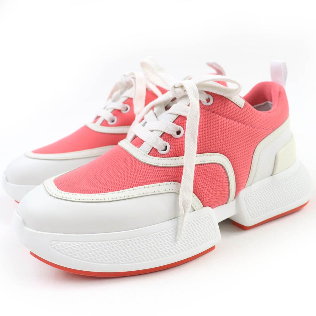 Ausgezeichnete HERMES Niedrige Sneaker Giga Schnürung Weiß Rosa Leder Damen 36 Gebraucht