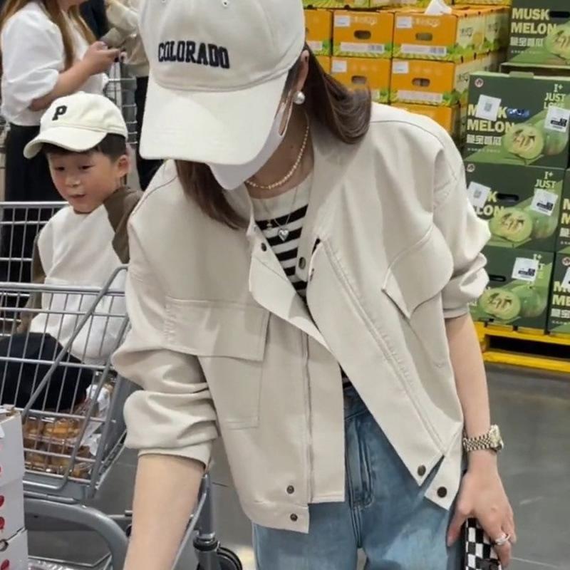 Frühlings- und Herbst-Lässige Kleine Lederjacke Damen Locker Schlank PU-Leder Motorradkleidung Mode Kurze Jacke