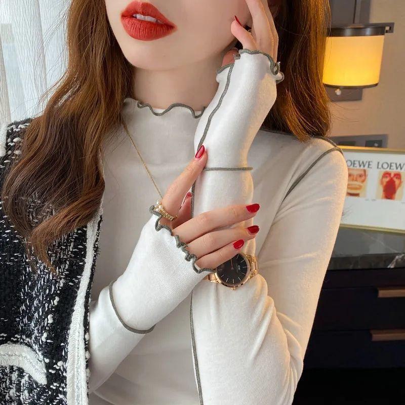 Für Herbst und Winter wird ein halbhoher Baselayer für Damen mit dickem Fleece hinzugefügt, kombiniert mit einem stilvollen T-Shirt und einem langärmligen Fleece-Oberteil.