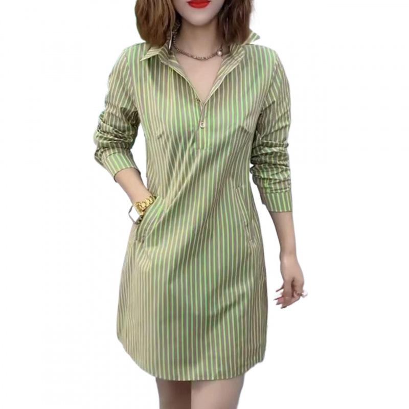 Autumn and Winter Shirt Dress for Women Korean Style Slimming Mid-length Long-sleeved Striped Skirt for Outer Wear