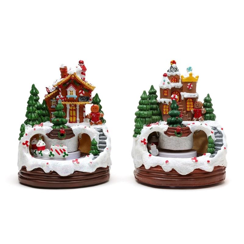 Gefertigt aus Kunstharz, leicht im Gewicht, farbecht und mit rutschfester Basis, sorgt diese drehbare Zug-Spieluhr, musikalische Weihnachts-Hütten-Figurdekoration für eine stabile Drehung und liefert dabei einen kristallklaren Musikklang und einen langanhaltenden visuellen Reiz.