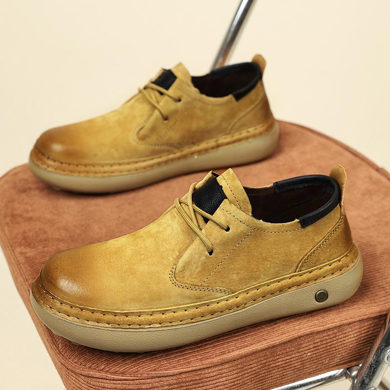 Retro Low-Top Schuhe Herrenschuhe Stil Leder Herbst Neu Lässige Lederschuhe Herren Weiches Leder Weiche Sohlen Herren Schuhe mit großem Zeh