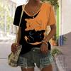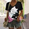 Damen T-Shirt Sommer Katzen-Print Lässig Kurzarm V-Ausschnitt Tee Mode Streetwear Weiblich Übergröße Kleidung