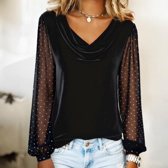 Elegantes Mesh-Ärmeldesign: Dieses Oberteil mit eingesetzten Mesh-Ärmeln verleiht einen Hauch von Raffinesse und modernen Stil.. Das halbtransparente Mesh bildet einen wunderschönen Kontrast zu dem festen Stoff und verbessert die Atmungsaktivität und sorgt gleichzeitig für einen schicken, trendigen Look, der in jeder Menge auffällt.