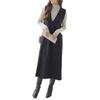 Dieser Pulloverrock mit tiefem V-Ausschnitt und einfarbigem Schwarz sorgt für einen raffinierten, eleganten Look.