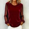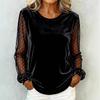 Elegantes Damen Samt Top mit Spitze Patchwork Langarm Damen T-Shirt