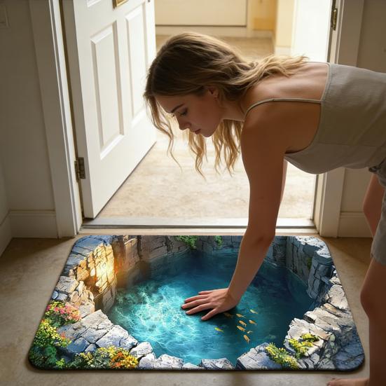 Verwandeln Sie Ihren Raum mit dieser 3D-Fußmatte mit optischer Täuschung. Sie bietet verschiedene Designoptionen, die beeindruckende optische Tiefeneffekte erzeugen.. Jeder Teppich weist eine realistische Lochillusion auf und verleiht jedem Raum eine einzigartige und verspielte Note, während er gleichzeitig die Neugierde von Haustieren weckt..