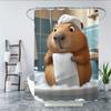 4-teiliges Cartoon-Niedliches und Lustiges Capybara Eichhörnchen Badezimmer-Set - 2D FLACHER Duschvorhang und Rutschfeste Badematten für Badezimmerdekor Exquisit