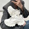 Schuhe mit geringer Höhenzunahme, dicksohlige, leichte Damenschuhe, neue, vielseitige, lässige Leder-Schnür-Sportschuhe, kleine weiße Schuhe