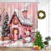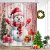 GAECute Blauer Schneemann Duschvorhänge Winterwald Zeder Schneeberg Neujahr Weihnachten Zuhause Badezimmer Vorhang Dekor Mit Haken