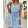Women's Loose Solid Color Quare Neck Spring Hollow Out Drawstring Sleeveless Dress