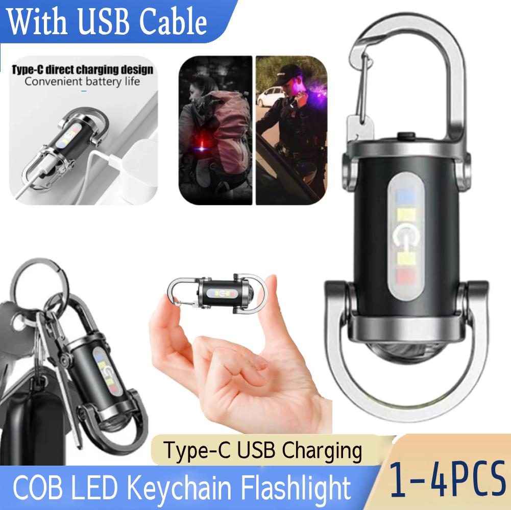 1-4PCS Pocket Flashlight Portable Keychain Torch USB Rechargeable Ultralight Camping Flashlight for Outdoor Emergency