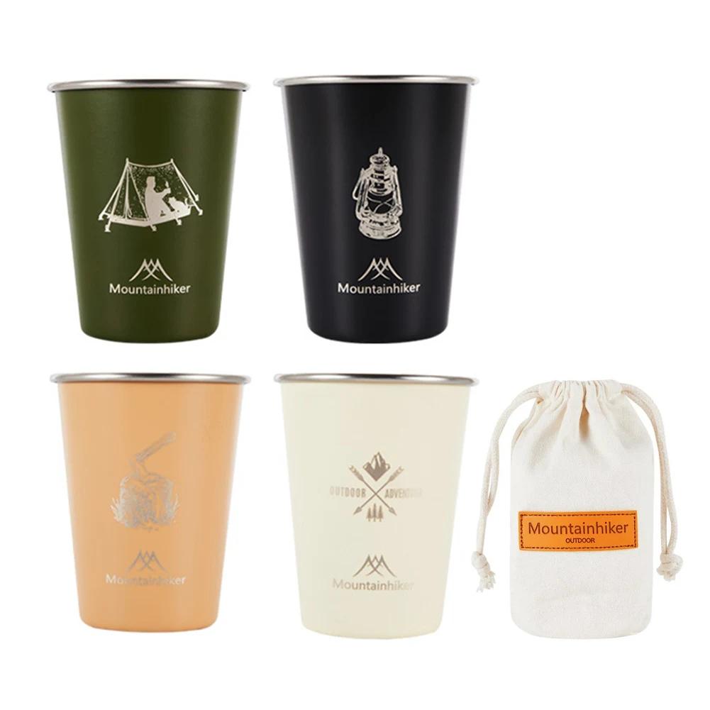 4Pcs/set Outdoor Camping Cup 350ML 304 Stainless Steel Barbecue Hiking Picnic Water Tea Beer Coffee Milk Mug BBQ Drinking Cups