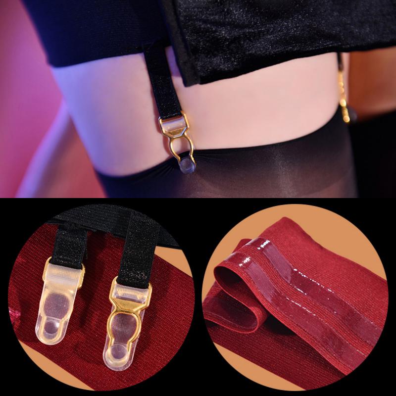 1 Paar dehnbare Oberschenkelbänder Beinringe Metallclips Kombination Strumpf Strumpfhalter mit Anti-Rutsch-Silikonband für Strümpfe
