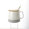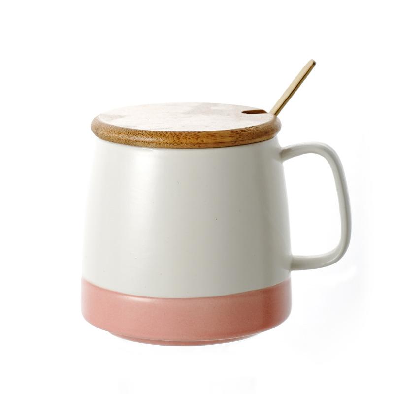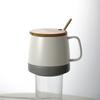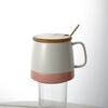 Kreative nordische Tasse mit Deckel und Löffel, Paar-Spleißung, matte Milchfarbglasur, Kaffeetasse, Keramiktasse, Holzdeckel, Becher