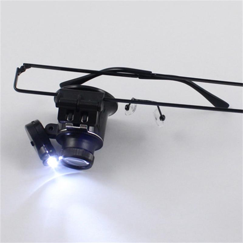 Stirnband 20X Vergrößerer Lupe Kopf Lupe Linse Schmuck Uhrenreparatur Uhrmacherlupe mit 1 LED-Licht