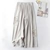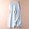 Große Damen-Sommermode, lässige Retro-Stickerei, gerades, weites Bein, Neun-Punkt-Hose