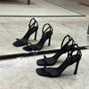 Mode Damen Sandalen mit eckiger Spitze und hohen Absätzen Sexy Stiletto Offene Ferse Schwarz Riemchen mit Schnalle Sommer Schuhe Modisch Rutschfest