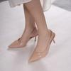 Modische Baotou-Slipper Sommer Neu Spitz Zehenbereich Flacher Ausschnitt Metallschnalle Rutschfest Abriebfest Stiletto Hohe Absätze