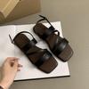 Mode Comemore Zehensandalen Damen 2025 Sommer Retro Weiche Flache Sohle Römische Schuhe Lässig Eckige Zehen Lederriemen Sandalias Mujer
