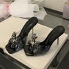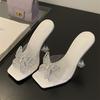Mode Eilyken 2025 Sommer PVC Transparent Schmetterlingsknoten Quadratische Zehe Damen Hausschuhe Mode Kristall Hohe Absätze Pantoletten
