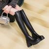 Mode 10CM Lackleder Mikrofaserleder Damen Kniehoch Plateau Keil High Top Mode Herbst Winter Stiefel Frühling Blockstiefel Reißverschluss Schuhe