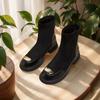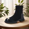 Mode Damen Mode Patchwork Plateau Stiefeletten Herbst Dicker Absatz Elastische Schlupfstiefel Damen Reißverschluss Hinten klobige Absätze Botas Mujer