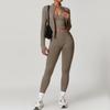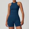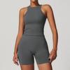 Damen Racerback Geripptes Yoga-Set: Nahtlose Taillenformende & Hüfthebende Fitnessbekleidung