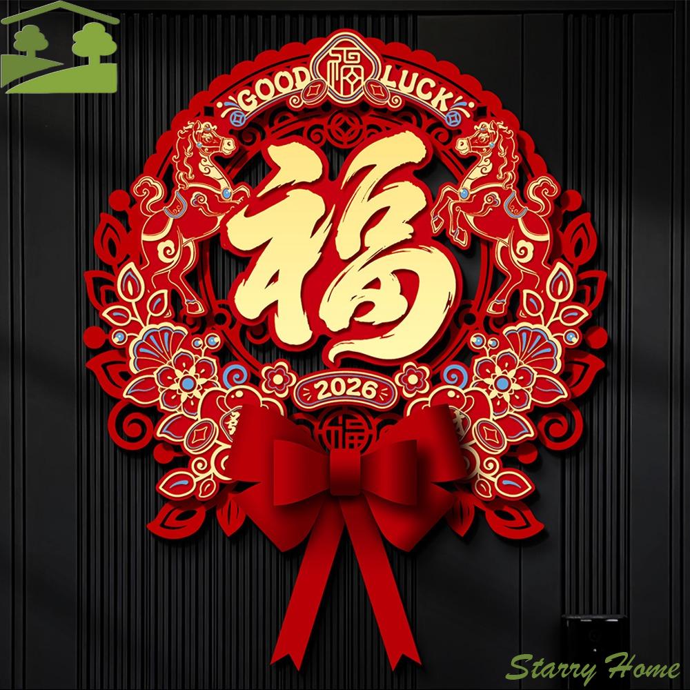 Wandaufkleber Tierkreiszeichen Pferd im chinesischen Stil Vlies mit Quasten Frühlingsfestaufkleber Traditionelle Zeichentrick