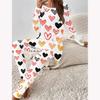 Euroamerikanische Mode 3D Liebesmusterdruck Damen Vier-Jahreszeiten Langarm T-Shirt + Lange Hose Zweiteiler. Perfektes Geschenk zum Valentinstag