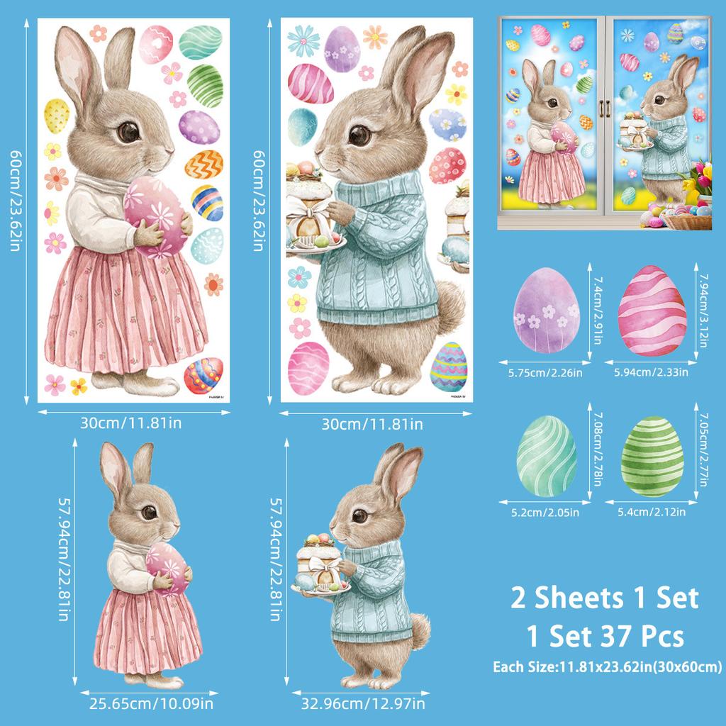 Osterhase Fensteraufkleber Vinyl Wasserdicht Niedliche Kaninchen Deko für Zuhause Glastür Osterdekoration Frühlingsfest Geschenk 2026