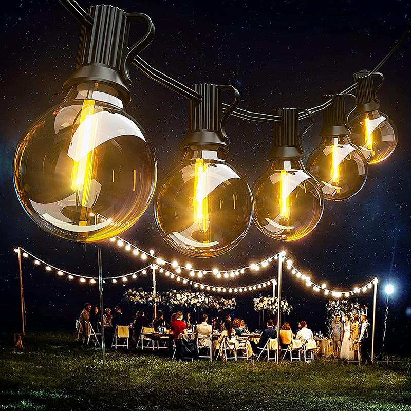 7.6M 15M Solar LED Lichterkette Außen G40 Kunststoffbirnen Garten Terrasse Lichterkette für Hochzeitsfeier Dekoration