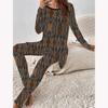 Euroamerikanische Mode 3D Leopardenmuster Damen Vier-Jahreszeiten Langarm T-Shirt + Lange Hose Zweiteiliges Set. Perfektes Geschenk zum Valentinstag