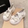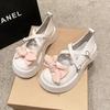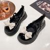 Mode Plateau Muffin Schleife PU Leder Schuhe Damen 2024 Neu Herbst Lolita Großer Kopf Mary Jane Einzelner Schuh Student Cosplay Schuhe Slipper