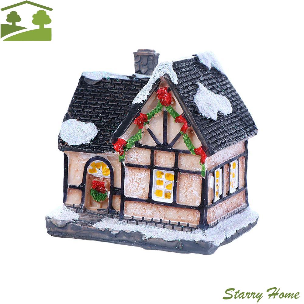 Xmas Gift Fairy Garden Figurine Resin Craft Luminous Miniatures Christmas Decoration Village House LED Light Ornament