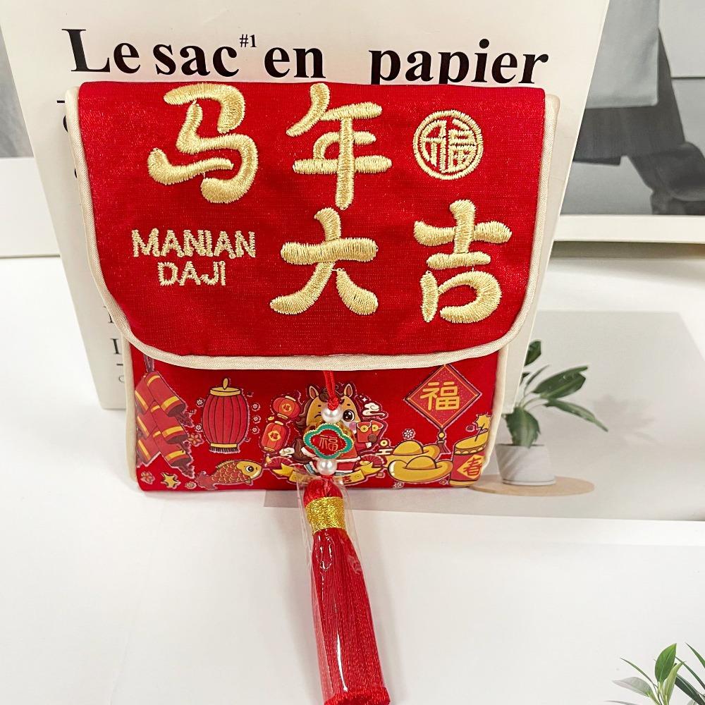 Traditional Spring Festival Red Wallet Hongbao Blessing Horse Year Red Pocket Brocade Embroidered Spring Festival Supplies