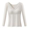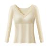 Damen Unterzieh-Tops V-Ausschnitt Spitzenbesatz Langarm Slim Fit Thermische Tops Einfarbig Gepolsterte Innenschicht Winterhemd