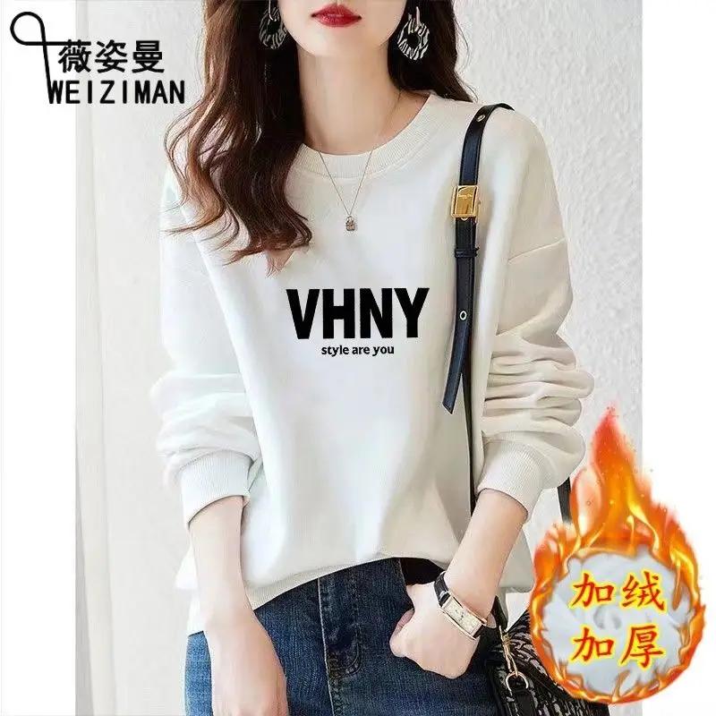 Hoodless Plus Velvet Thickened Loose Fashionable Ins Top Round Neck Sweatshirt for Women New Trendy