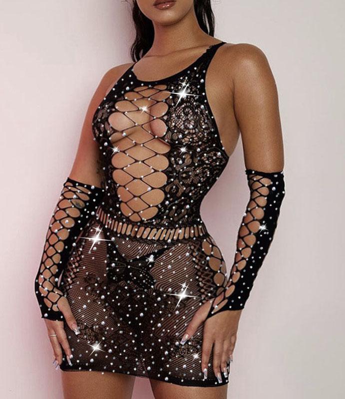 HOT lingerie women sexy Babydoll mujer Underwear Catsui diamante glisten Crystal notte Intimo sexy dress for sex langerie+glove
