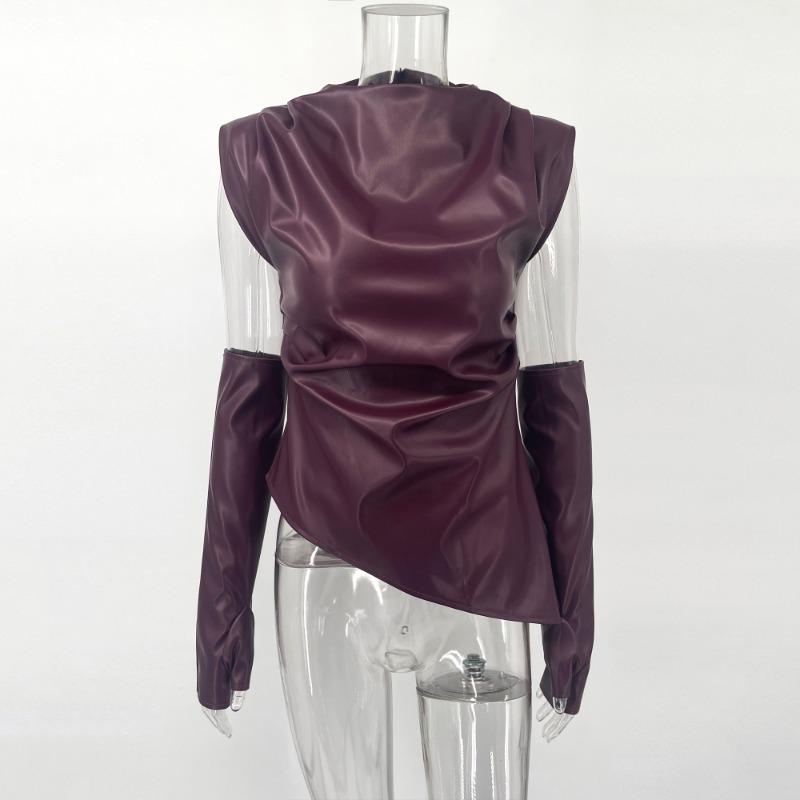 Einzigartiges Design:Sexy ärmellose geraffte Lederweste, geraffte Details an der Schulter, Leder-Tanktop für Damen, FaltenDetails, ärmellos, Cut-out, einfarbig, unregelmäßiger Saum, figurbetont, Tank-Crop-Top-Länge, gerafftes Design, Mode, Streetwear, der einzigartige schulterfreie Stil zeigt femininen Charme und hält mit dem Trend Schritt.