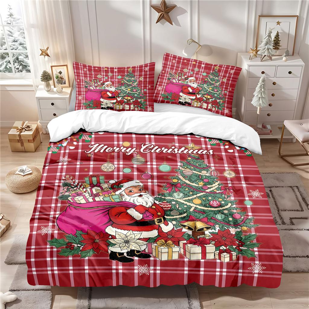 3Pcs Red Santa Claus Print Coreless Duvet Cover Set Multi Size Bedroom Holiday Bedding Decoration Soft Machine Washable