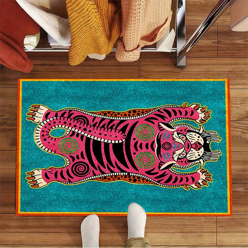 Retro Tiger Willkommen Fußmatte mit Muster Matten Teppiche für Küche Badezimmer Schachbrettmuster Bordüre Schlafzimmer Heimdekoration Teppich