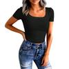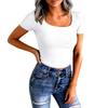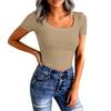Women's Ribbed Slim Fit Sexy U-Neck Casual T-Shirt