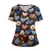 Damenmode V-Ausschnitt Kurzarm Overalls mit Taschen Print Tops Kleidung