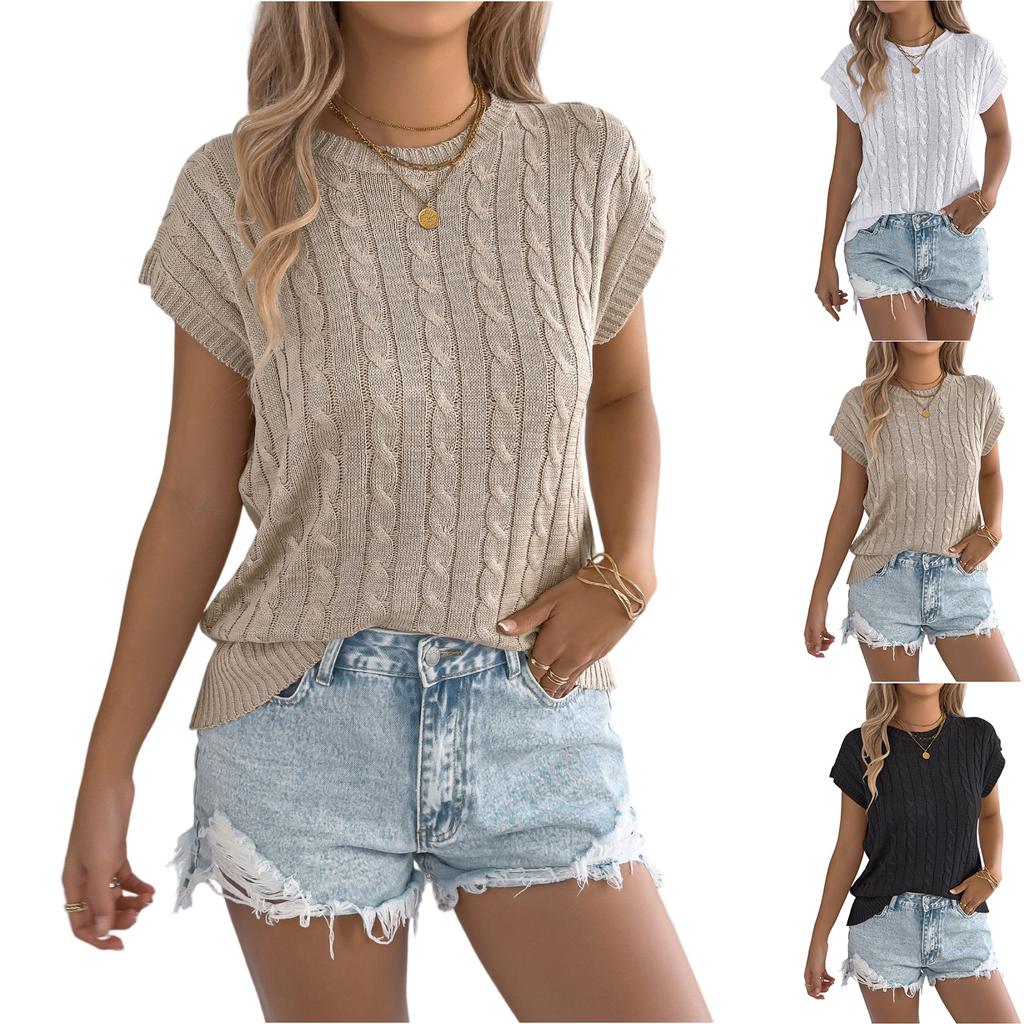 Women's Solid Color Cable Knit Casual Loose Sleeve Sweater Top