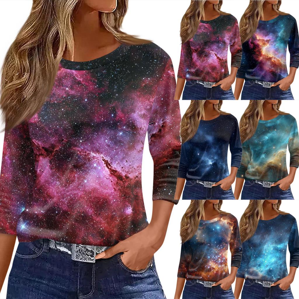 Damen T-Shirt Print 3/4 Ärmel Alltagsmode Wochenende Basic Rundhals Normales Oberteil