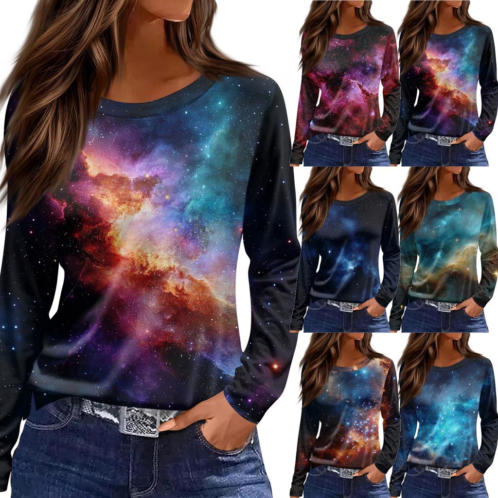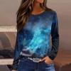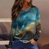 Damenmode Lässig Schlitz Saum Rundhals Langarm Lose Bedrucktes T-Shirt Damen Top