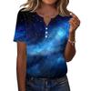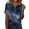 Damen T-Shirt mit Aufdruck und Knopfleiste, kurzärmelig, für den Alltag, Wochenendmode, Basic, V-Ausschnitt, normales Oberteil