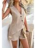 Sommer 2025 V-Ausschnitt Unregelmäßiges Weste & Shorts Set für Europa und Amerika